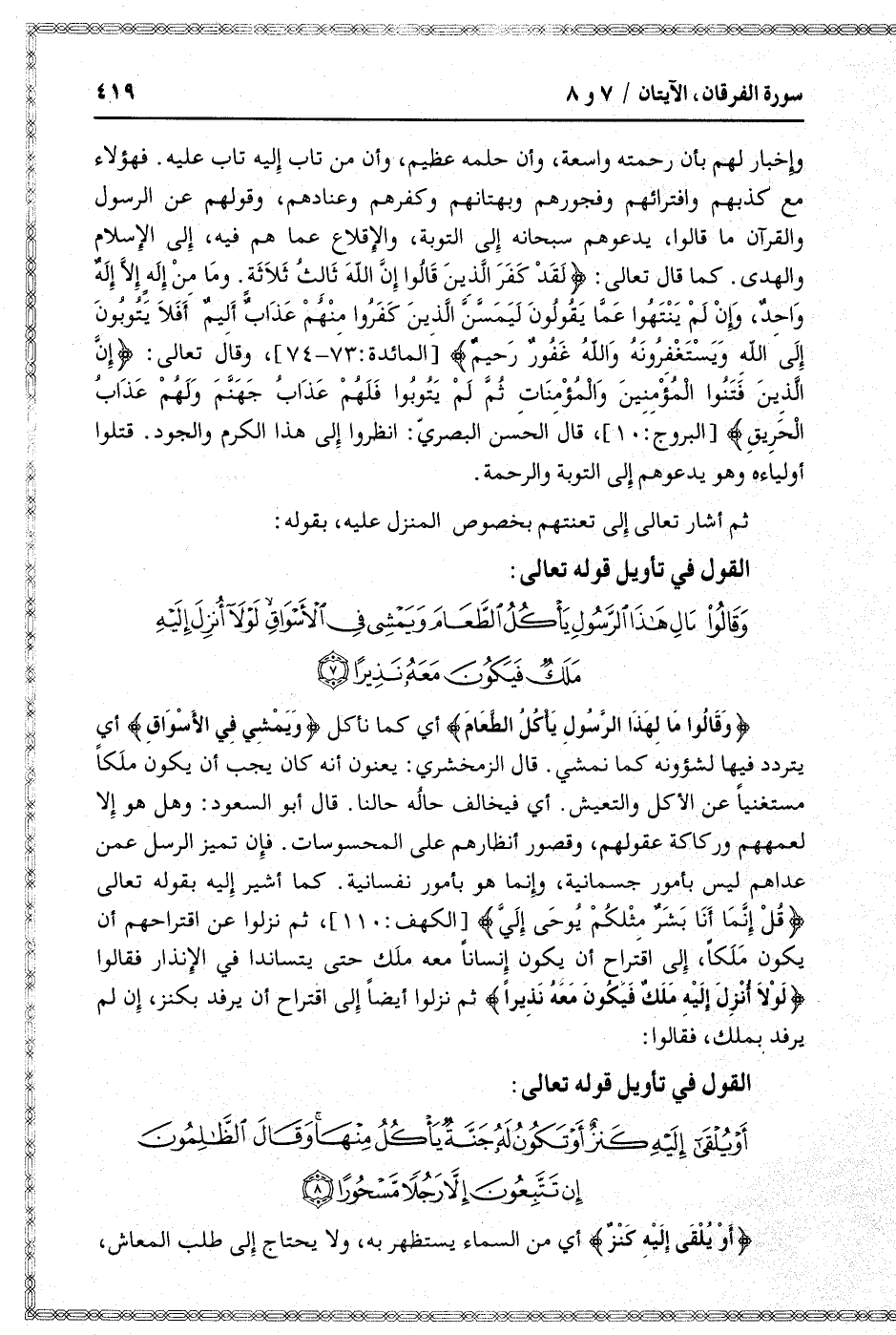 وَقالُوا مالِ هذَا الرَّسُولِ يَأْكُلُ الطَّعامَ وَيَمْشِي فِي الْأَسْواقِ لَوْلا أُنْزِلَ إِلَيْهِ مَلَكٌ فَيَكُونَ مَعَهُ نَذِيراً (7)