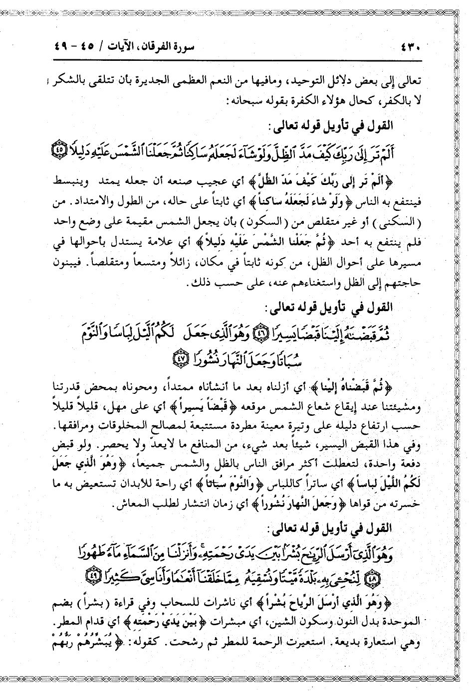 أَلَمْ تَرَ إِلى رَبِّكَ كَيْفَ مَدَّ الظِّلَّ وَلَوْ شاءَ لَجَعَلَهُ ساكِناً ثُمَّ جَعَلْنَا الشَّمْسَ عَلَيْهِ دَلِيلاً (45)