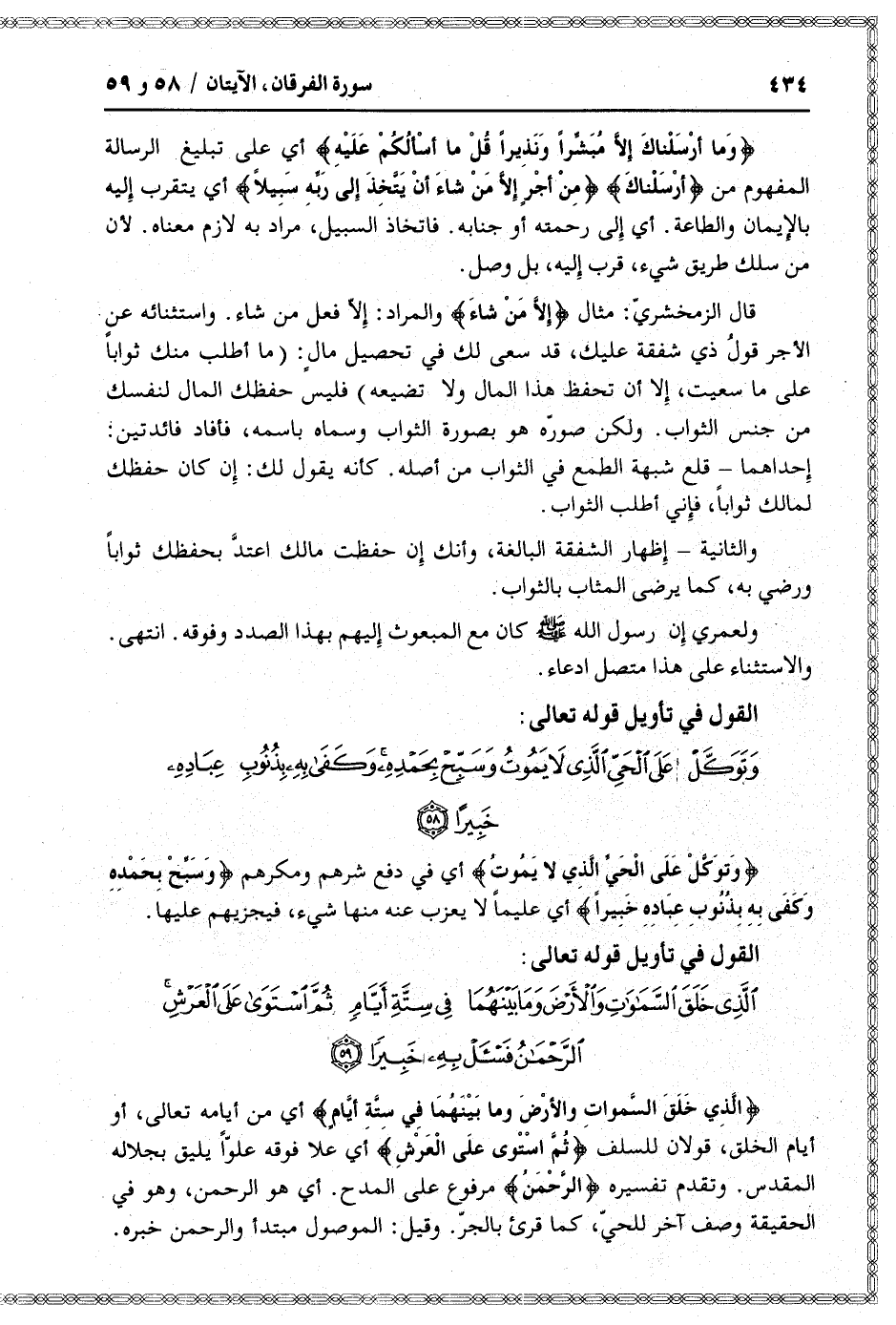 القول في تأويل قوله تعالى: [سورة الفرقان (25) : آية 58]