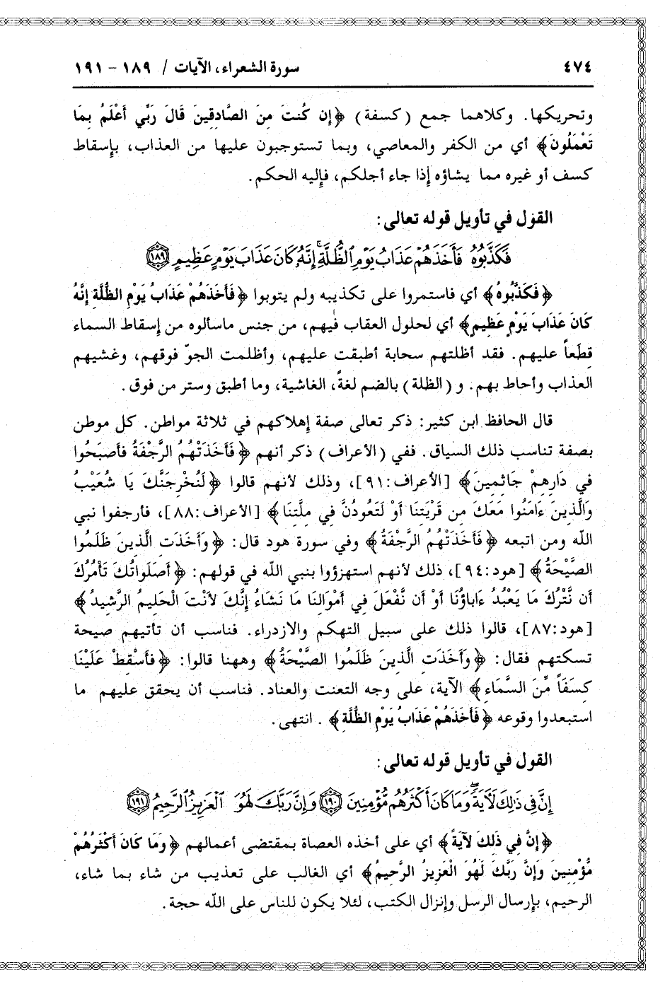 القول في تأويل قوله تعالى: [سورة الشعراء (26) : الآيات 190 الى 191]