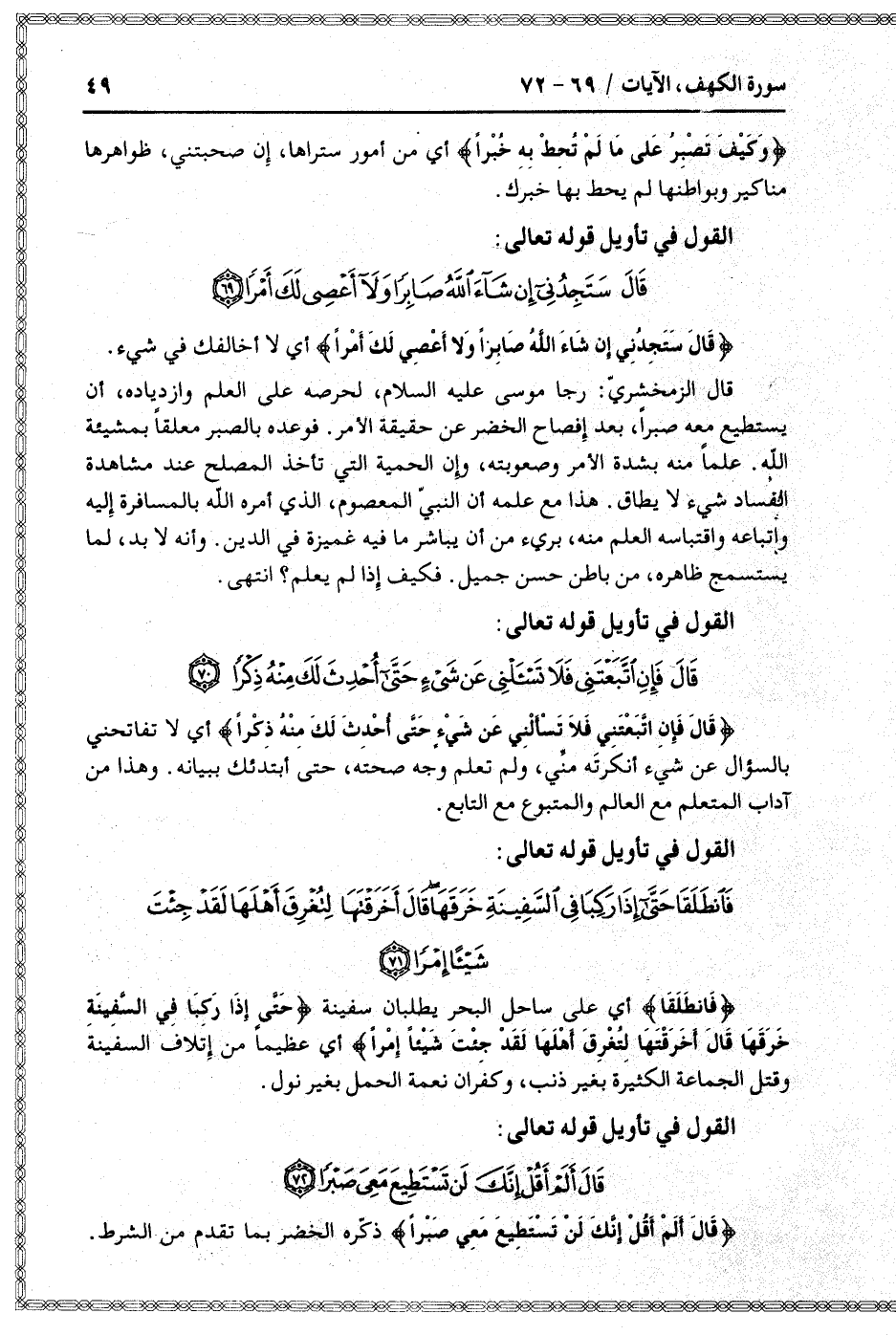 القول في تأويل قوله تعالى: [سورة الكهف (18) : آية 72]
