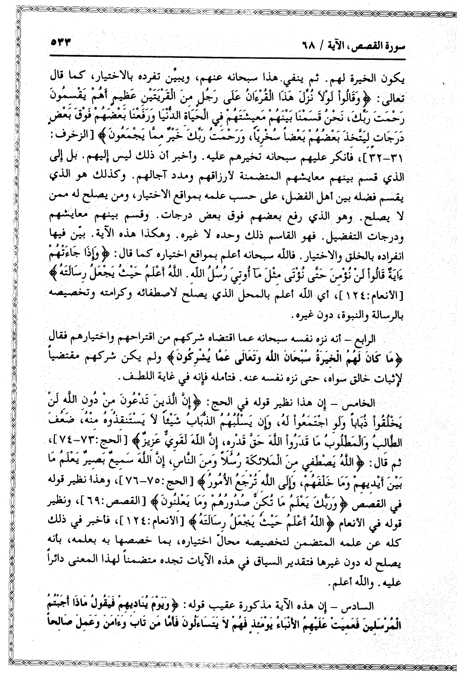 الرابع- أنه نزه نفسه سبحانه عما اقتضاه شركهم من اقتراحهم واختيارهم فقال ما كانَ لَهُمُ الْخِيَرَةُ سُبْحانَ اللَّهِ وَتَعالى عَمَّا يُشْرِكُونَ ولم يكن شركهم مقتضيا لإثبات خالق سواه، حتى نزه نفسه عنه. فتأمله فإنه في غاية اللطف.