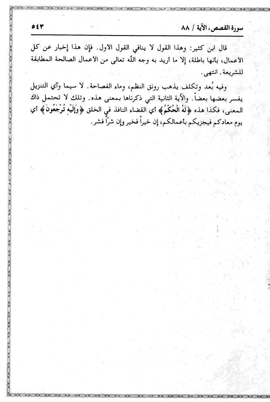 قال ابن كثير: وهذا القول لا ينافي القول الأول. فإن هذا إخبار عن كل الأعمال، بأنها باطلة، إلا ما أريد به وجه الله تعالى من الأعمال الصالحة المطابقة للشريعة. انتهى.