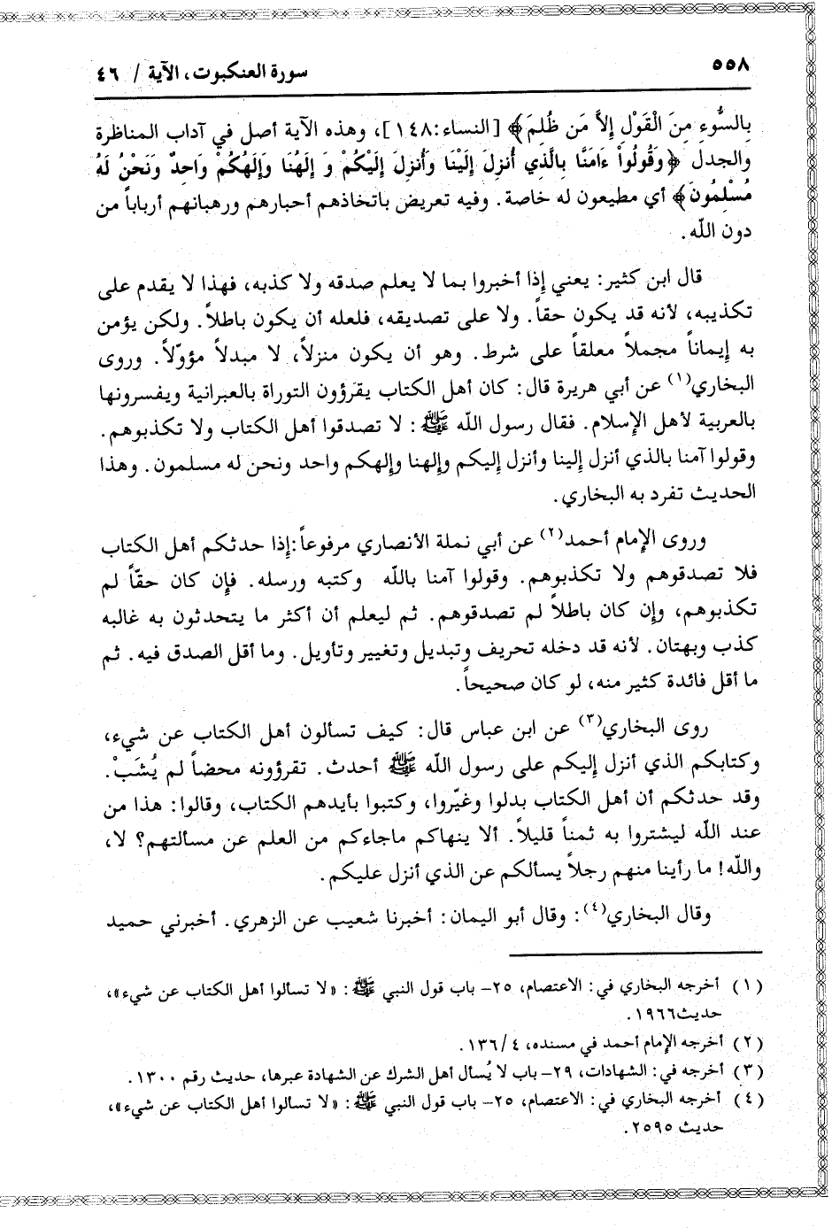 وقولوا آمنا بالذي أنزل إلينا وأنزل إليكم وإلهنا وإلهكم واحد ونحن له مسلمون. وهذا الحديث تفرد به البخاري.