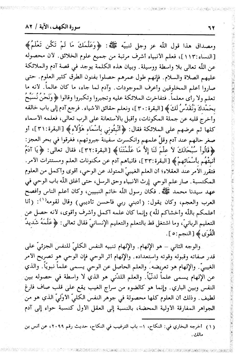 ومصداق هذا قول الله عز وجل لنبيّه صلى الله عليه وسلم: وَعَلَّمَكَ ما لَمْ تَكُنْ تَعْلَمُ