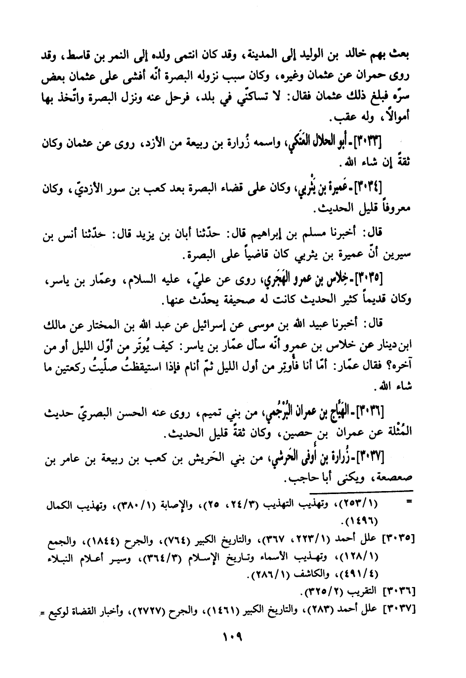 3037 علل أحمد (283) ، والتاريخ الكبير (1461) ، والجرح (2727) ، وأخبار القضاة لوكيع (1/ 292) ، والحلية (2/ 258) ، والجمع (1/ 155) ، والأنساب (4/ 108) ، وتاريخ الإسلام، وسير أعلام النبلاء (4/ 515، 516) ، والعبر (1/ 109) ، والكاشف (1/ 321) ، وتهذيب التهذيب (3/ 322) ، وشذرات الذهب (1/ 102) ، وتهذيب الكمال (1977) .