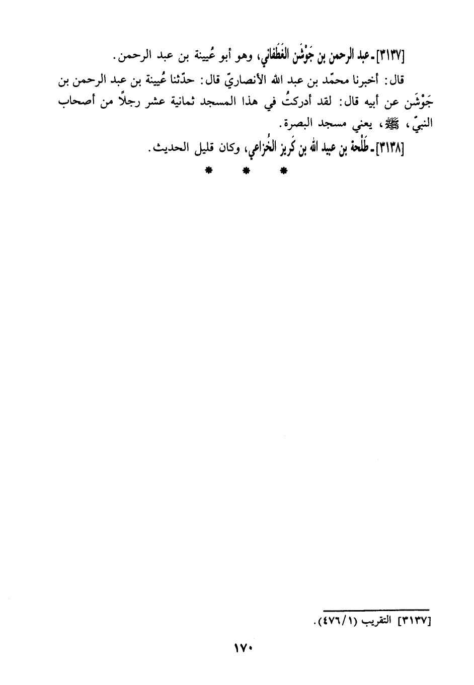 3138- طَلْحَةُ بْنُ عُبَيْدِ اللَّهِ بْنِ كَرِيزٍ الْخُزَاعِيُّ.