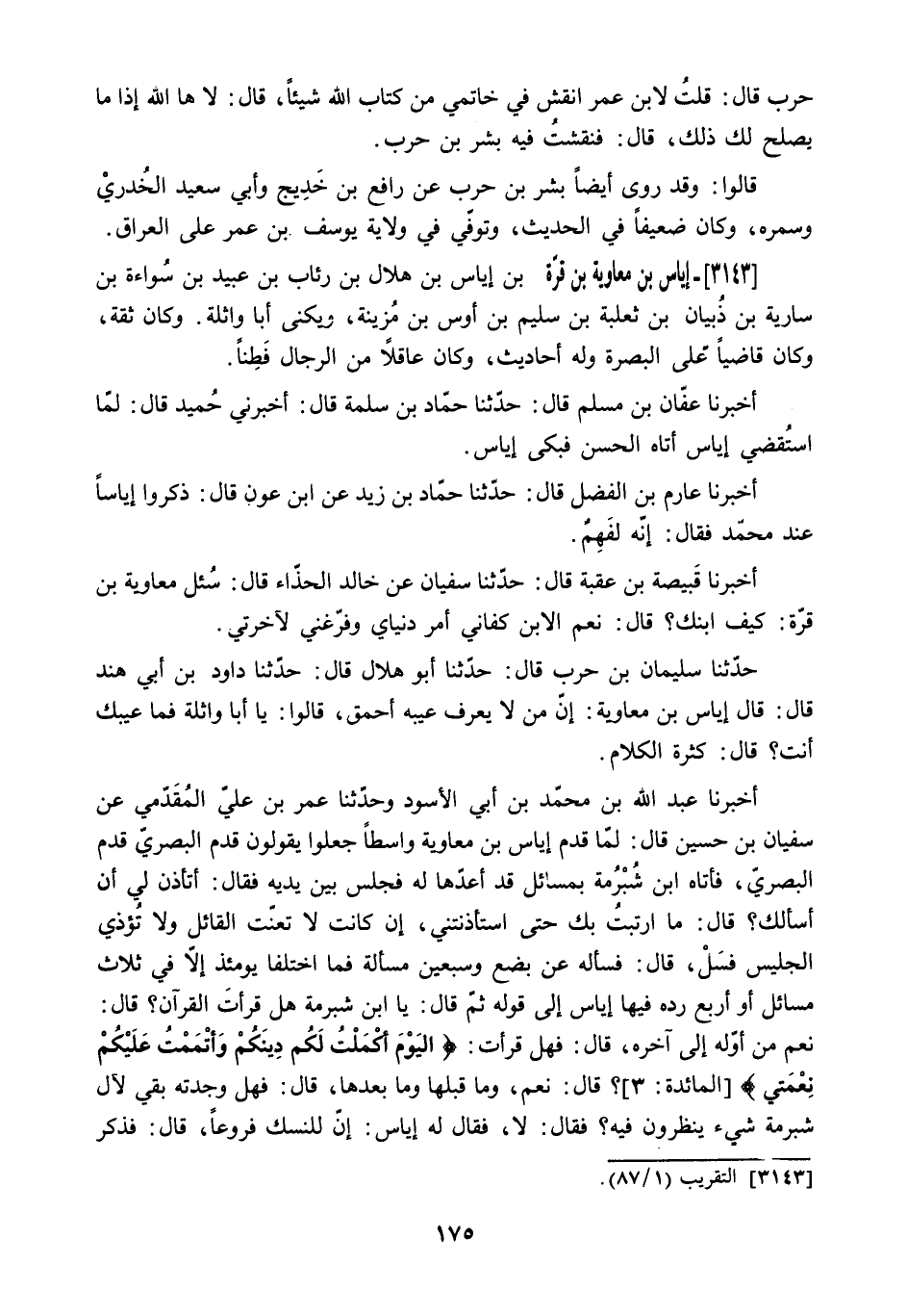 3143- إِيَاسُ بْنُ مُعَاوِيَةَ بْنِ قُرَّةَ