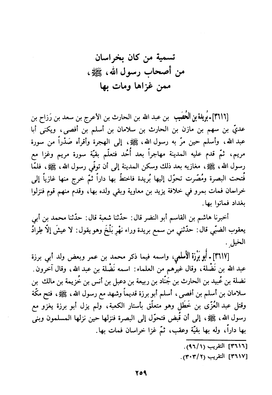 تَسْمِيَةُ مَنْ كَانَ بِخُرَاسَانَ مِنْ أَصْحَابِ رَسُولِ اللَّهِ - صَلَّى اللَّهُ عَلَيْهِ وسلم - ممن غزاها ومات بها