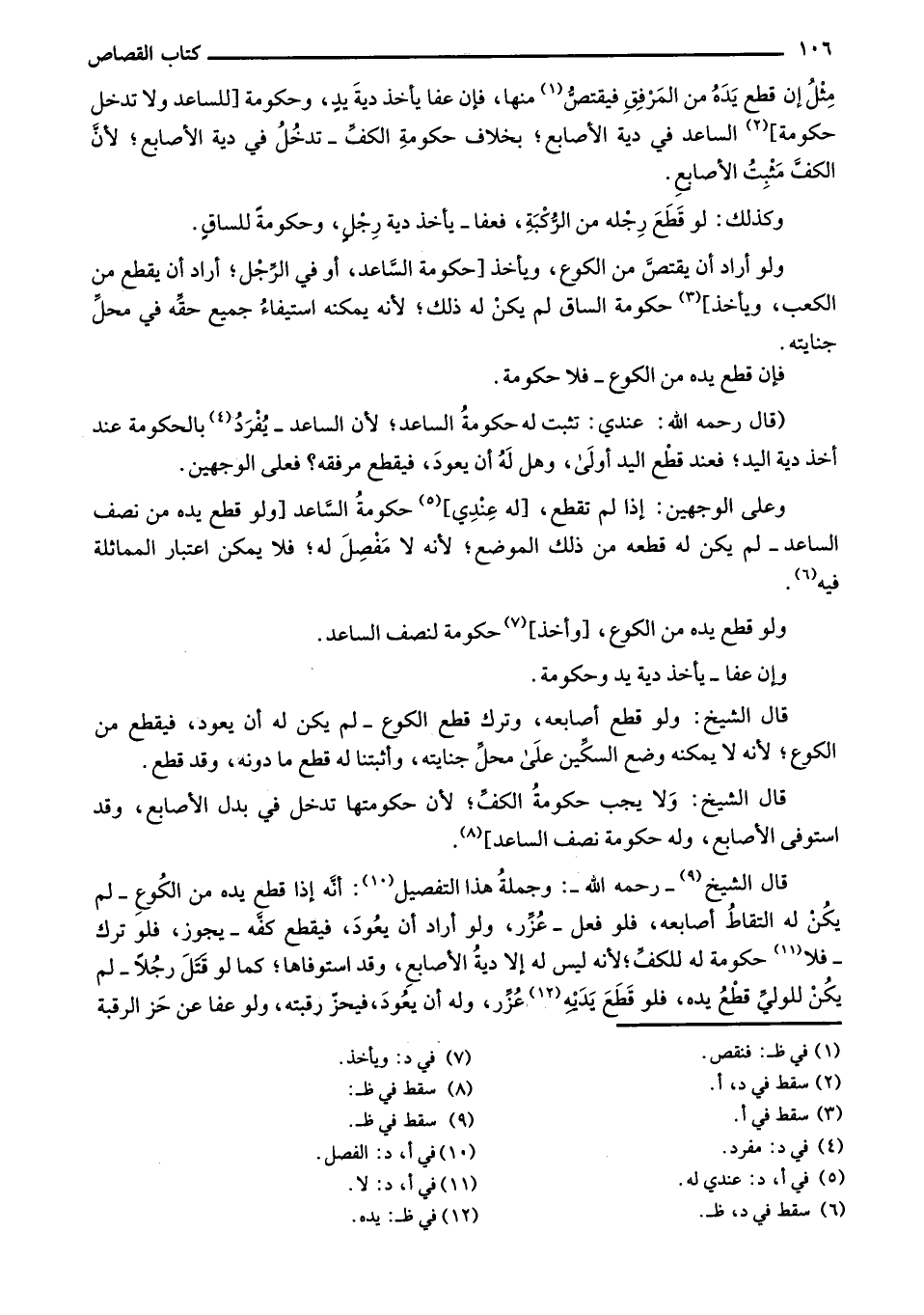 قال الشيخ - رحمه الله-: وجملةُ هذا التفصيل: أنه إذا قطع يده من الكوع - لم يكن له التقاط أصابعه، فلو فعل - عُزر، ولو أراد أن يعود، فيقطع كفه - يجوز، فلو ترك - فلا حكومة له للكفِّ؛ لأنه ليس له إلا دية الأصابع، وقد استوفاها؛ كما لو قتل رجلاً - لم يكن للوي قطع يده، فلو قطع يديه عُزر، وله أن يعود، فيحز رقبته، ولو عفا عن حز الرقبة