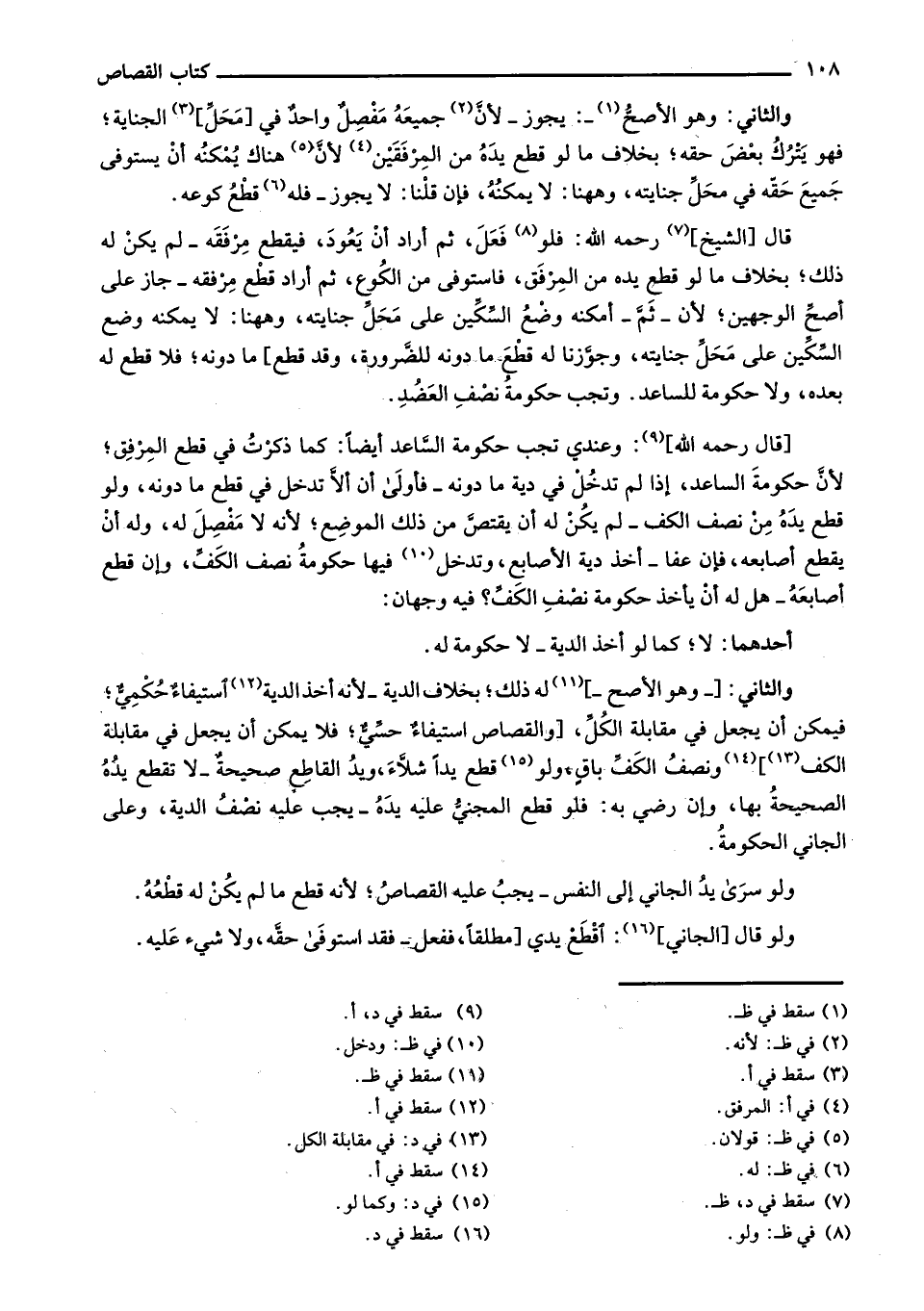 [قال رحمه الله]: وعندي تجب حكومة الساعد أيضاً: كما ذكرتُ في قطع المرفق؛ لأن حكومة الساعد، إذا لم تدخل في دية ما دونه - فأولى أن ألا تدخل في قطع ما دونه، ولو قطع يده من نصف الكف - لم يكن له أن يقتص من ذلك الموضع؛ لأنه لا مفصل له، وله أن يقطع أصابعه، فإن عفا - أخذ دية الأصابع، وتدخل فيها حكومةُ نصف الكف، وإن قطع أصابعه - هل له أن يأخذ حكومة نصف الكفِّ؟ فيه وجهان: