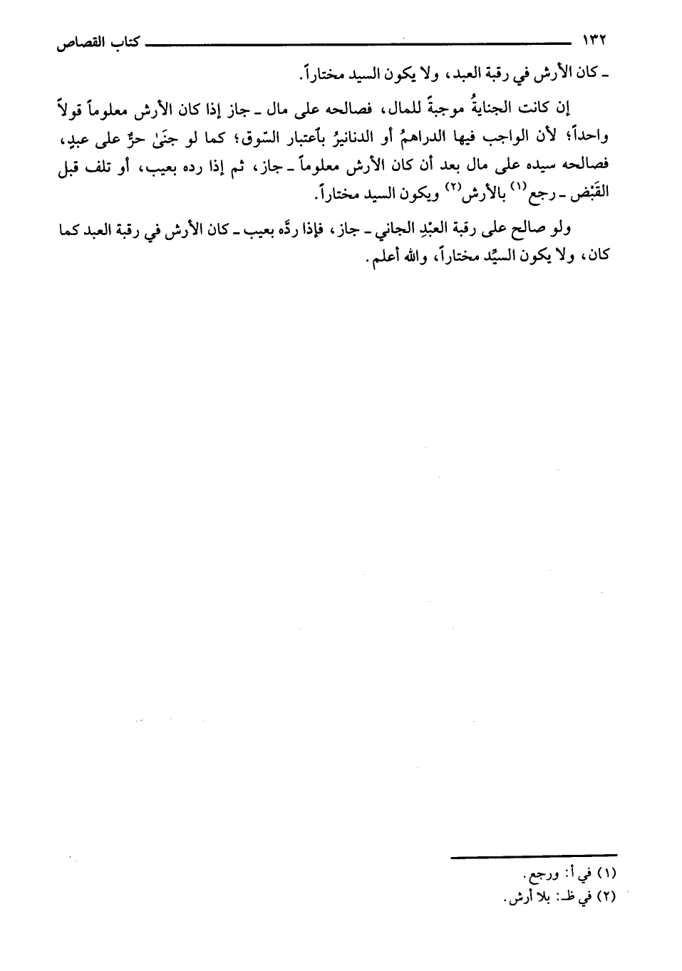 - كان الأرش في رقبة العبد، ولا يكون السيد مختاراً.