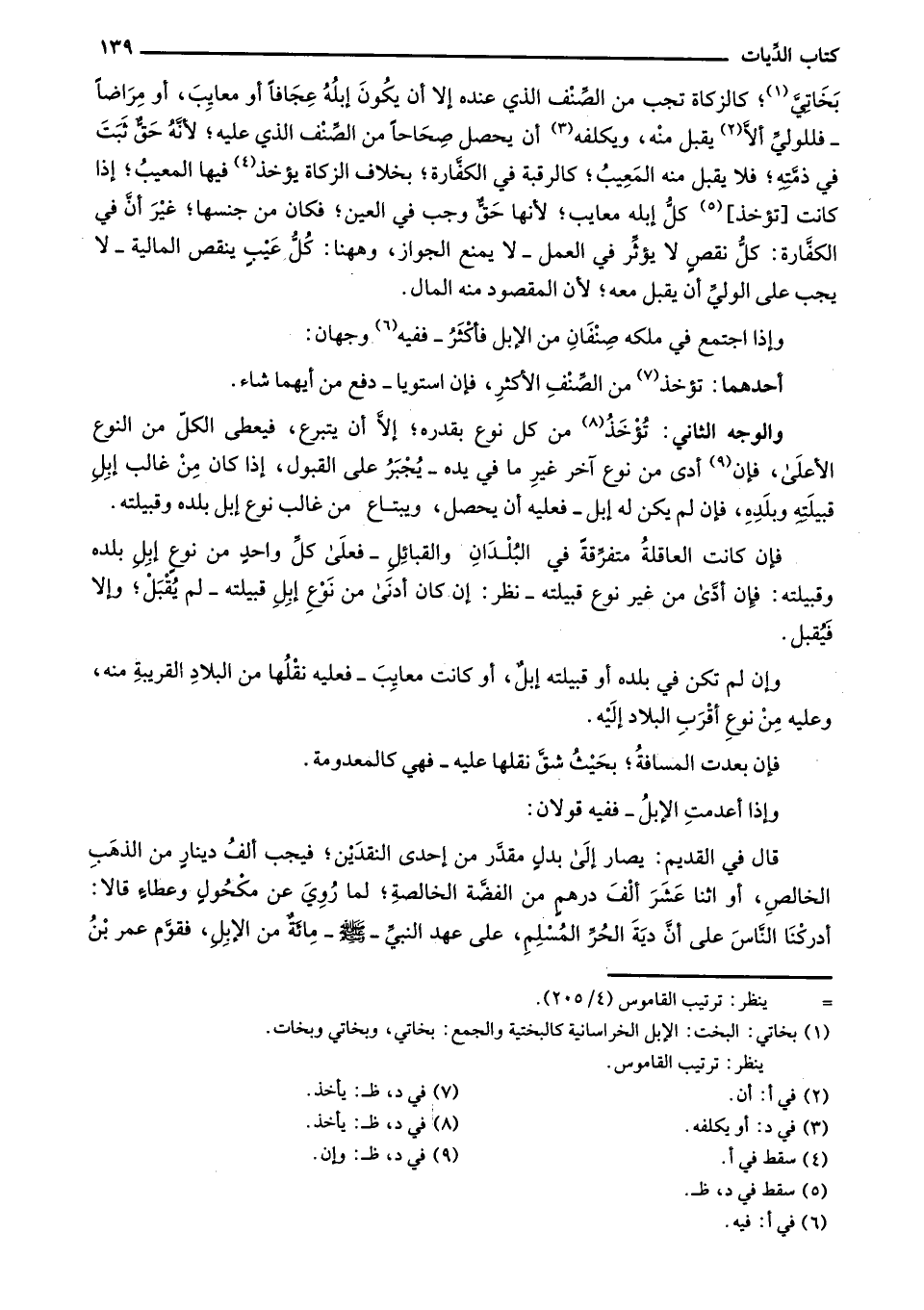 بخاتي؛ كالزكاة تجب من الصنف الذي عنده إلا أن يكون إبله عجافاً أو معايب، أو مراضاً - فللولي ألا يقبل منه، ويكلفه أن يحصل صحاحاً من الصنف الذي عليه؛ لأنه حق ثبت في ذمته؛ فلا يقبل منه المعيب؛ كالرقبة في الكفارة؛ بخلاف الزكاة يؤخذ فيها المعيب؛ إذا كانت [تؤخذ] كل إبله معايب؛ لأنها حق وجب في العين؛ فان من جنسها؛ غير أن في الكفارة: كل نقصٍ لا يؤثر في العمل - لا يمنع الجواز، وههنا كل عيبٍ ينقص المالية- لا يجب على الولي أن يقبل معه؛ لأن المقصود منه المال.