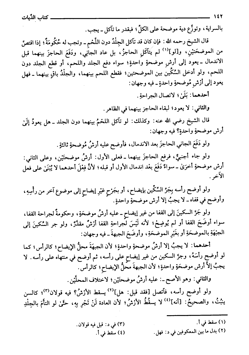 قال الشيخ رضي الله عنه: وكذلك: لو تآكل اللحم بينهما دون الجلد - هل يعودُ إلى أرش موضحةٍ واحدةٍ؟ فيه وجهان: