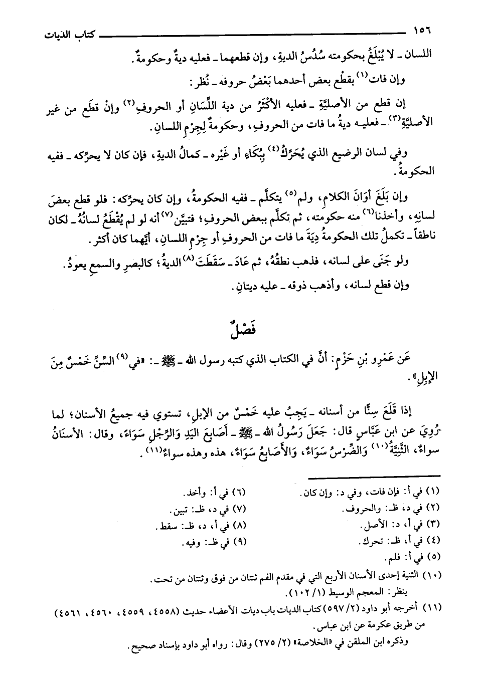 عن عمرو بن حزمٍ: أن في الكتاب الذي كتبه رسول الله - صلى الله عليه وسلم -: "في السن خمسٌ من الإبل".