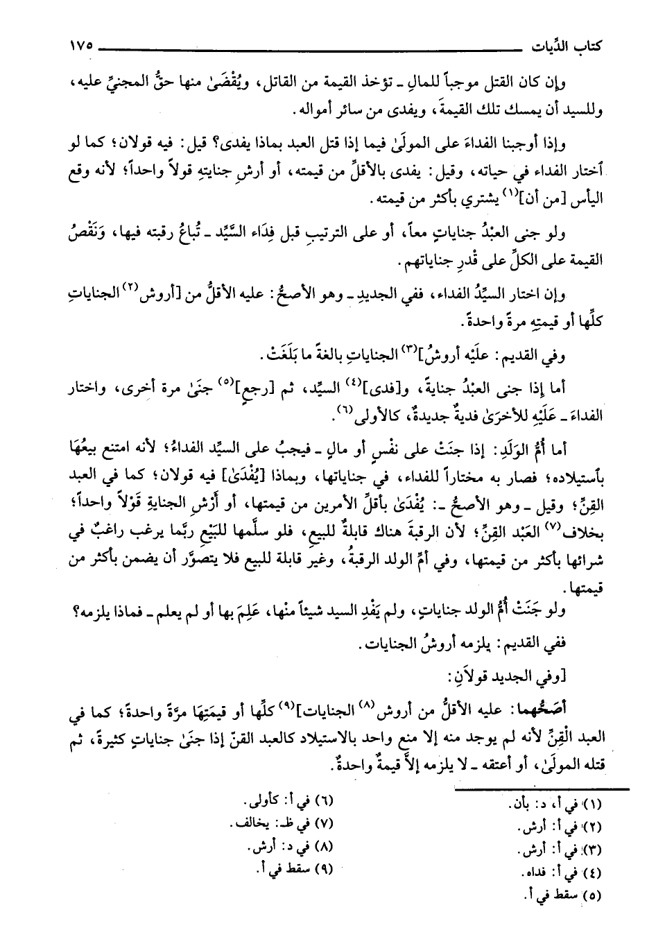 وفي القديم: عليه أروش] الجناياتِ بالغةً ما بلغت.