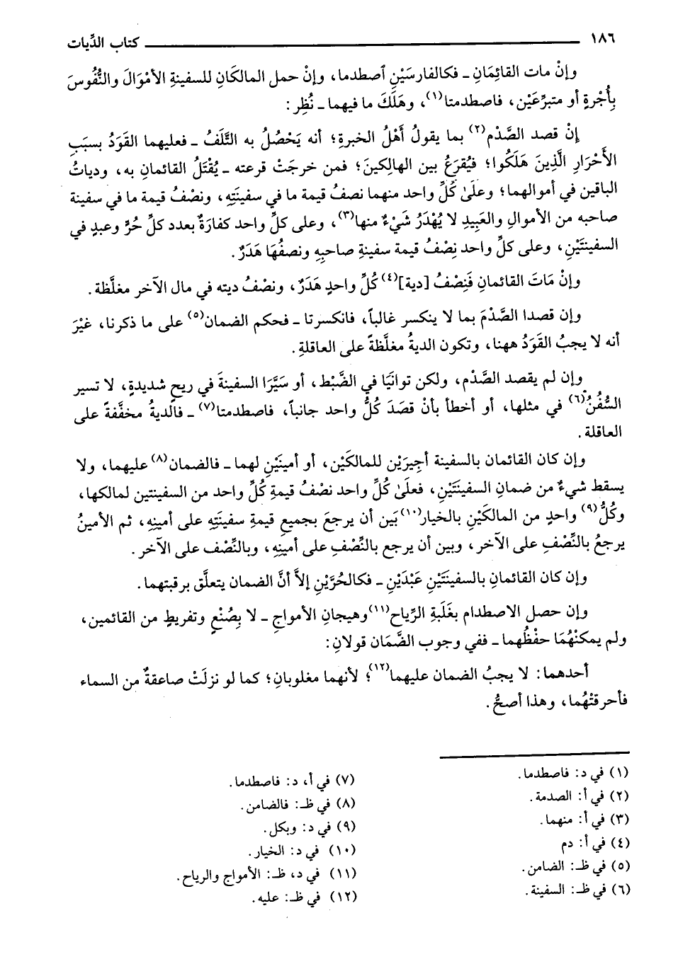 وإن مات القائمان - فكالفارسين اصطدما، وإن حمل المالكان للسفينة الأموال والنفوس بأجرة أو متبرعين، فاصطدمتا، وهلك ما فيهما - نُظر: