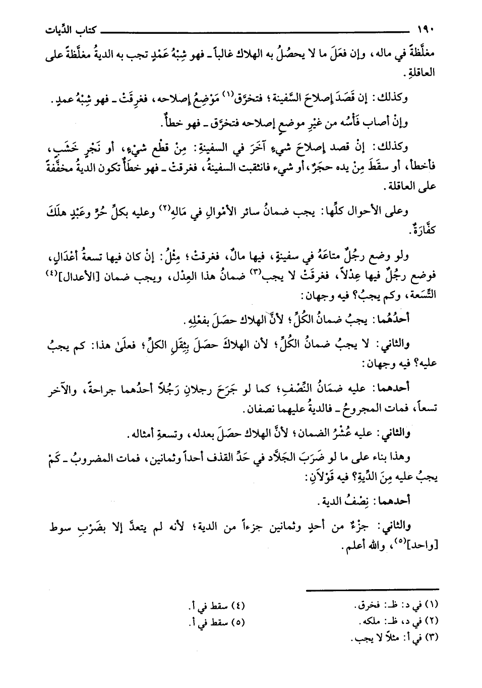 وكذلك: إن قصد إصلاح شيء آخر في السفينة: من قطع شيء، أو نجرٍ خشبٍ، فأخطأ، أو سقط من يده حجرٌ، أو شيء فانثقبت السفينة، فغرقت - فهو خطأ تكون الدية مخففة على العاقلة.