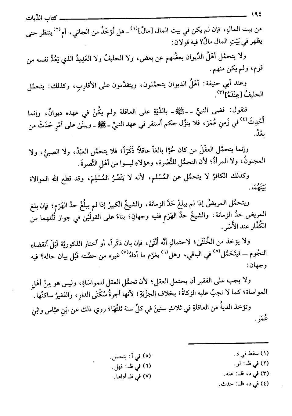 ولا يتحمل أهل الديوان بعضهم عن بعض، ولا الحليف ولا العديد الذي يعد نفسه من قوم، ولم يكن منهم.