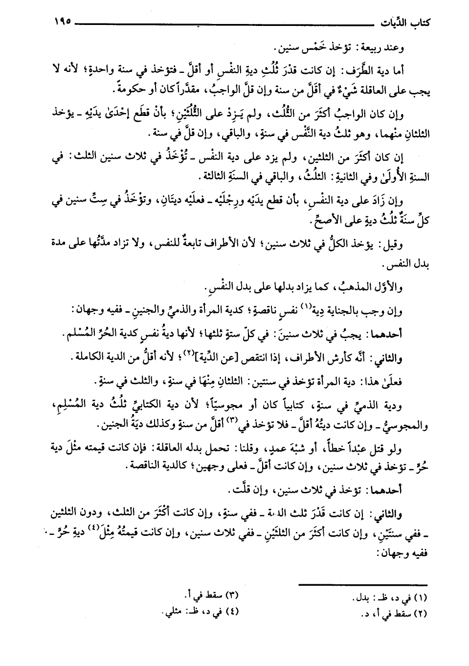 ودية الذمي في سنةٍ، كتابياً كان أو مجوسياً؛ لأن دية الكتابي ثلث دية المسلم، والمجوسي - وإن كانت ديته أقل - فلا تؤخذ في اقل من سنة وكذلك دية الجنين.