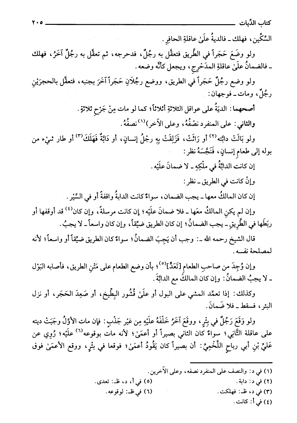 السكين، فهلك - فالدية على عاقلة الحافر.