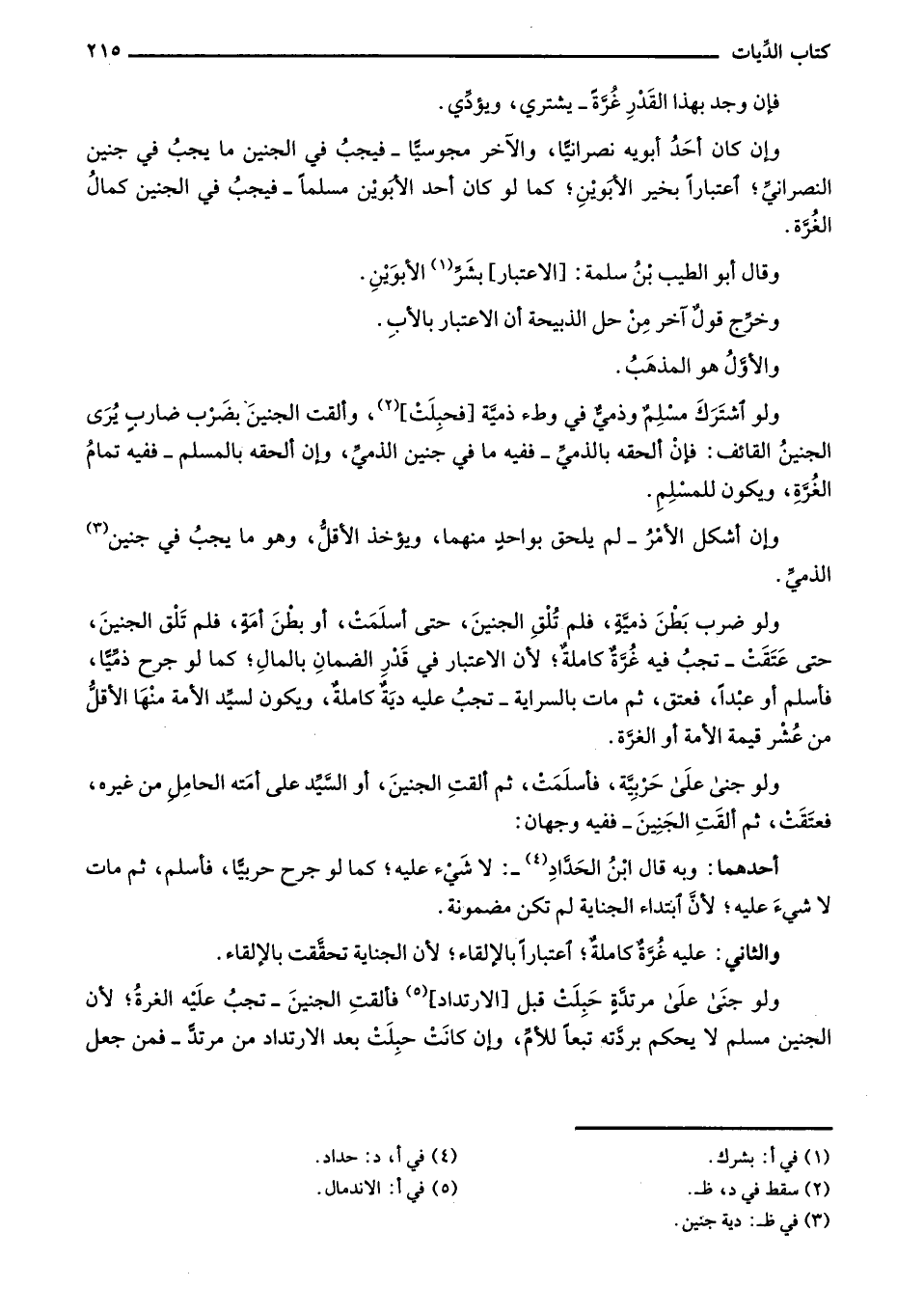 ولو اشترك مسلمٌ وذميٌّ في وطء ذمية [فحبلت]، وألقت الجنين بضرب ضارب يُرى الجنين القائف: فإن ألحقه بالذمي - ففيه ما في جنين الذمي، وإن ألحقه بالمسلم - ففيه تمام الغرة، ويكون للمسلم.