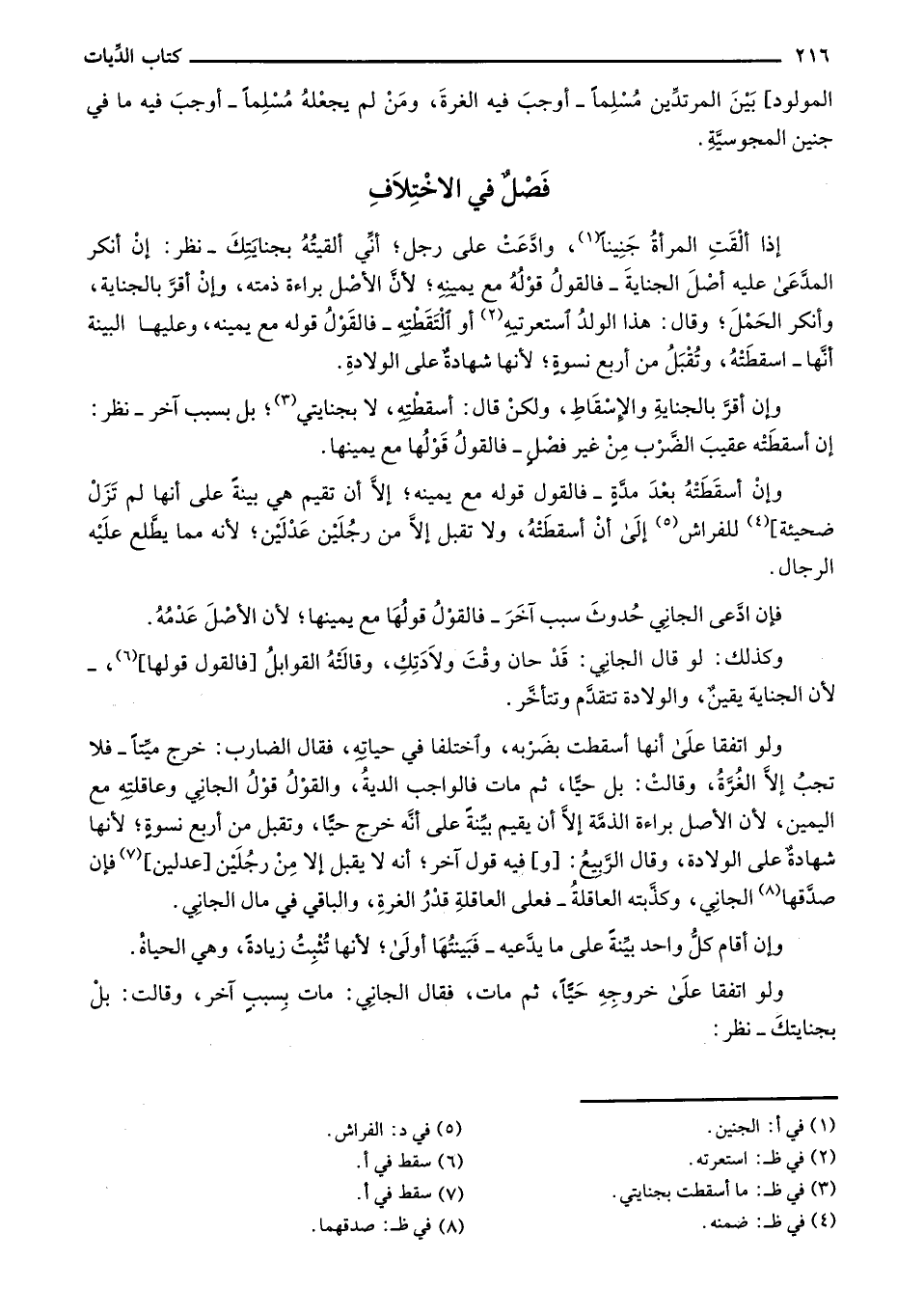 المولود] بين المرتدين مسلماً - أوجب فيه الغرة، ومن لم يجعله مسلماً - أوجب فيه ما في جنين المجوسية.