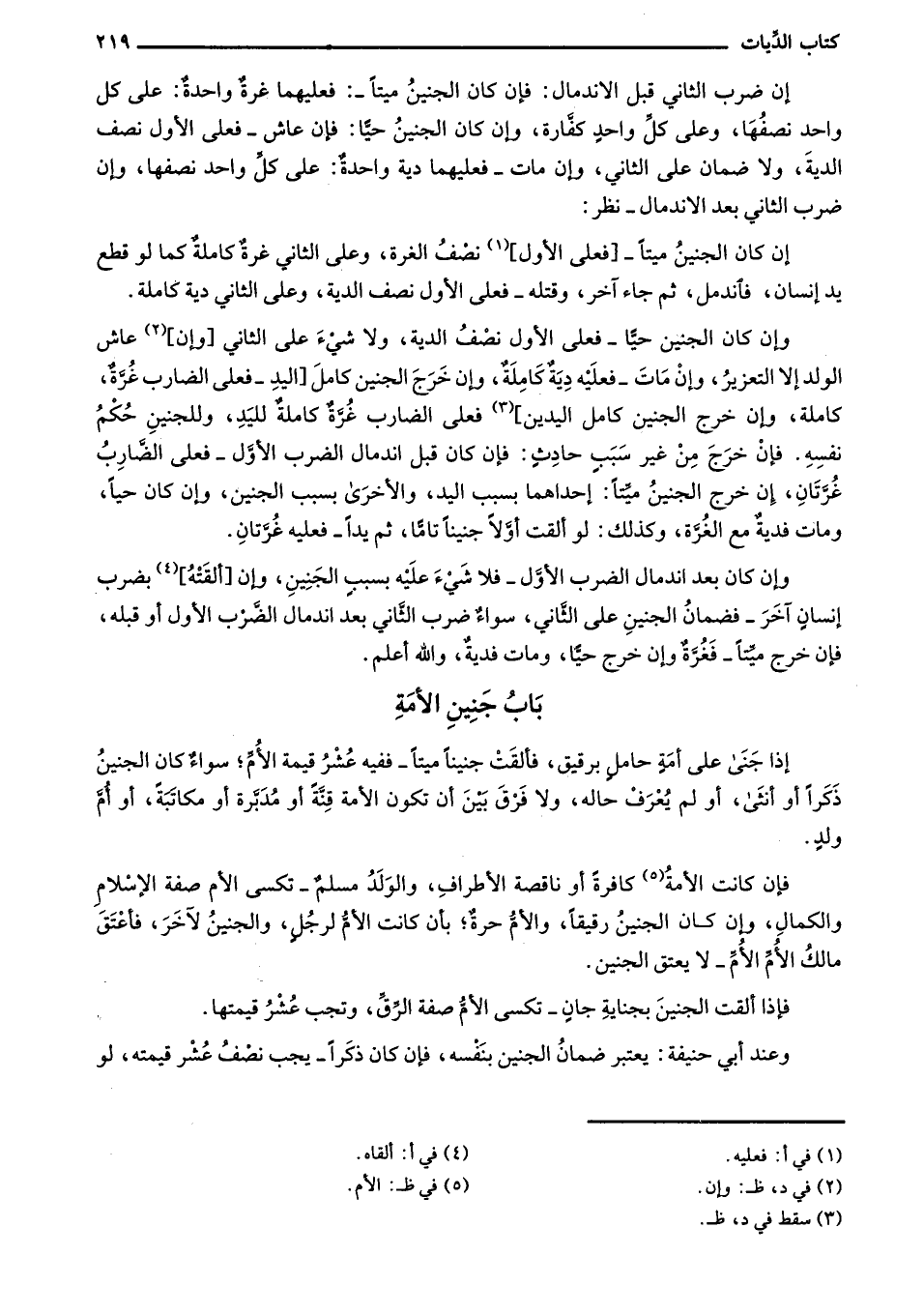 فإذا ألقت الجنين بجناية جانٍ - تكسى الأم صفة الرق، وتجب عشر قيمتها.