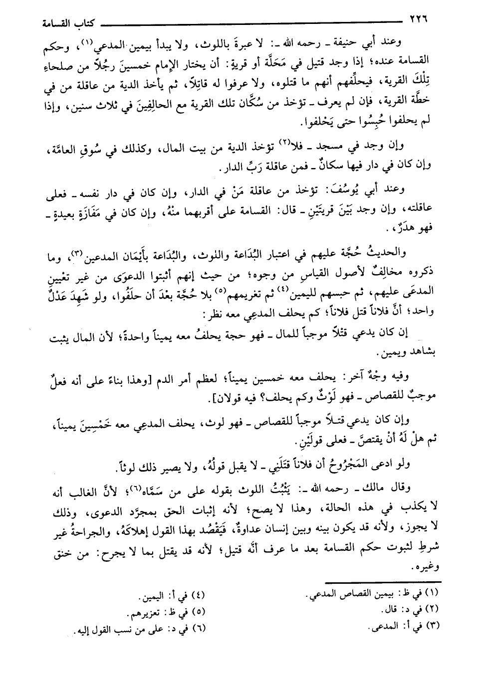 وعند أبي حنيفة- رحمه الله-: لا عبرة باللوث، ولا يبدأ بيمين المدعي، وحكم القسامة عنده؛ إذا وجد قتيل في محلة أو قرية: أن يختار الإمام خمسين رجلاً من صلحاء تلك القرية، فيحلفهم أنهم ما قتلوه، ولا عرفوا له قاتلاً، ثم يأخذ الدية من عاقلة من في خطة القرية، فن لم يعرف - تؤخذ من سكان تلك القرية مع الحالفين في ثلاث سنين، وإذا لم يحلفوا حبسوا حتى يحلفوا.