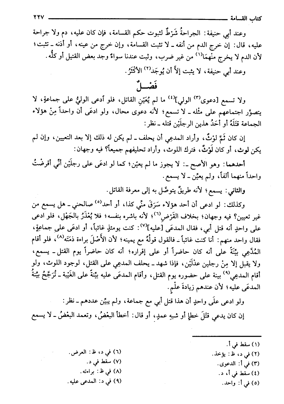 وعند أبي حنيفة: الجراحة شرط لثبوت حكم القسامة، فإن كان عليهن دم ولا جراحة عليه، قال: إن خرج الدم من أنفه - لا تثبت القسامة، وإن خرج من عينه، أو أذنه - تثبت؛ لأن الدم لا يخرج منهما من غير ضرب، وثبت عندنا سواءٌ وجد بعض القتيل أو كله.