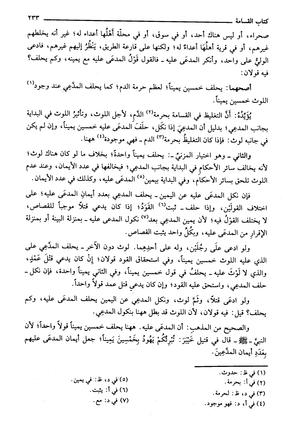 والثاني- وهو اختيار المزني -: يحلف يميناً واحدةً؛ بخلاف ما لو ان هنا لوث؛ لأنه يخالف سائر الأحكام في البداية بجانب المدعي؛ فيخالفها في عدد الأيمان، وعند عدم اللوث تلحق بسائر الأحكام، وفي البداية بيمين المدعى عليه، وكذلك في عدد الأيمان.