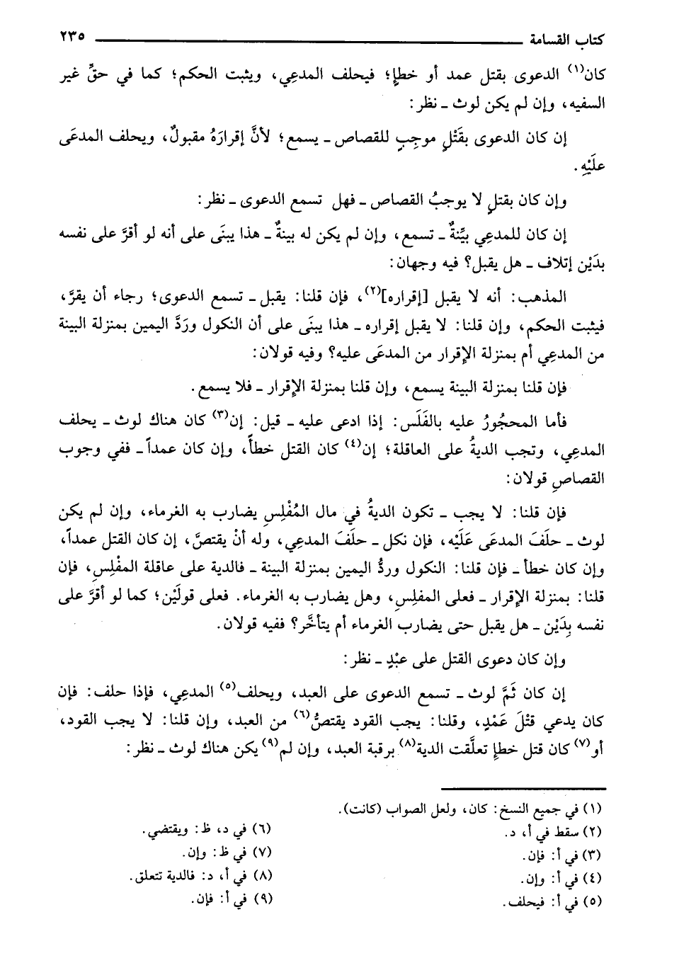 كان الدعوى بقتل عمد أو خطإ؛ فيحلف المدعين ويثبت الحكم؛ كما في حق غير السفيه، وإن لم يكن لوث - نظر: