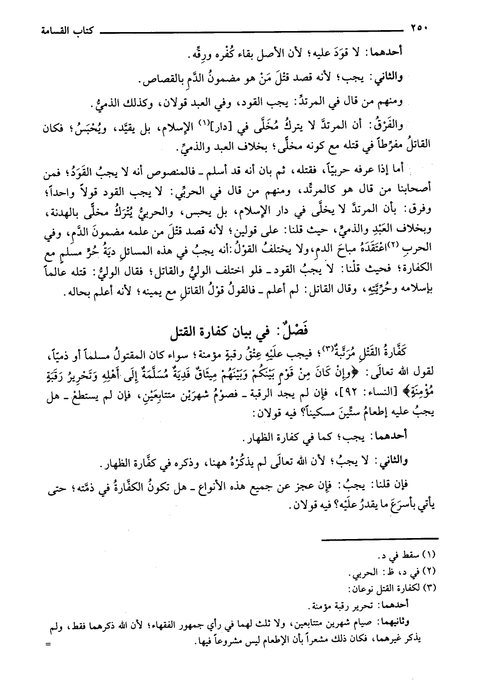 كفارة القتل مرتبةٌ؛ فيجب عليه عتق رقبة مؤمنة؛ سواء كان المقتول مسلماً أو ذمياً لقول الله تعالى: {وَإِنْ كَانَ مِنْ قَوْمٍ بَيْنَكُمْ وَبَيْنَهُمْ مِيثَاقٌ فَدِيَةٌ مُسَلَّمَةٌ إِلَى أَهْلِهِ وَتَحْرِيرُ رَقَبَةٍ مُؤْمِنَةٍ} [النساء: 92]، فإن لم يجد الرقبة - فصوم شهرين متتابعين، فإن لم يستطع - هل يجب عليه إطعام ستين مسكيناً؟ فيه قولان: