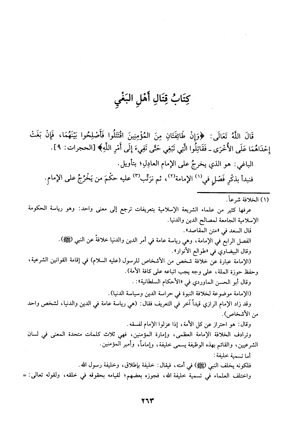 فنبدأ بذكر فصلٍ في الإمامة، ثم نرتب عليه حكم من يخرج على الإمام.
