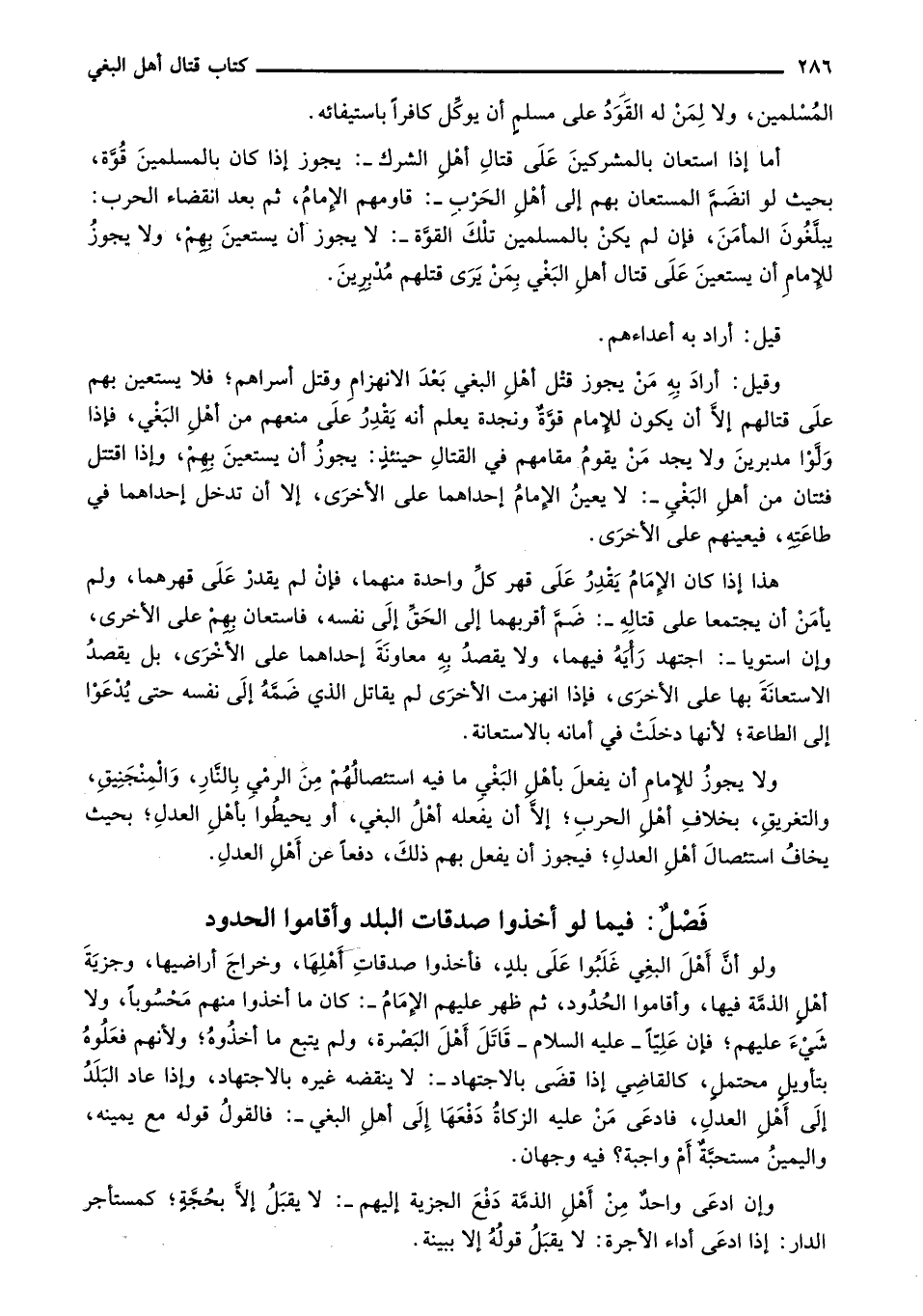 وقيل: أراد به من يجوز قتل أهل البغي بعد الانهزام وقتل أسراهم؛ فلا يستعين بهم على قتالهم إلا أن يكون للإمام قوة ونجدة يعلم أنه يقدر على منعهم من أهل البغي، فإذا ولوا مدبرين ولا يجد من يقوم مقامهم في القتال حينئذٍ: يجوز أن يستعين بهم، وإذا اقتتل فئتان من أهل البغي-: لا يعين الإمام إحداهما على الأخرى، إلا أن تدخل أحداهما في طاعته، فيعينهم على الأخرى.