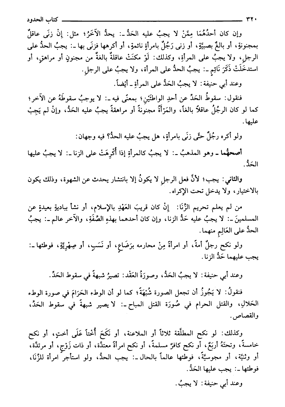 فنقول: سقوط الحد عن أحد الواطئين؛ بمعنى فيه-: لا يوجب سقوطه عن الآخر؛ كما لو كان الرجل عاقلاً بالغاً، والمرأة مجنونة أو مراهقة يجب عليه الحد، وإن لم يجب عليها.