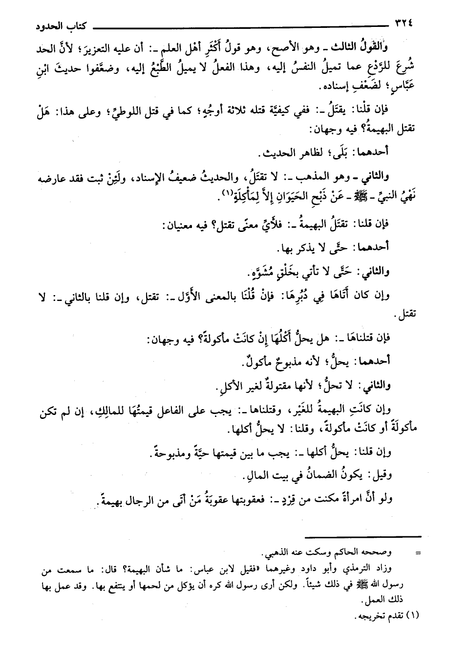 والقول الثالث - وهو الأصح، وهو قول أكثر أهل العلم-: أن عليه التعزير؛ لأن الحد شُرع للردع عما تميلُ النفس إليه، وهذا الفعل لا يميل الطبع إليه، وضعفوا حديث ابن عباس؛ لضعف إسناده.