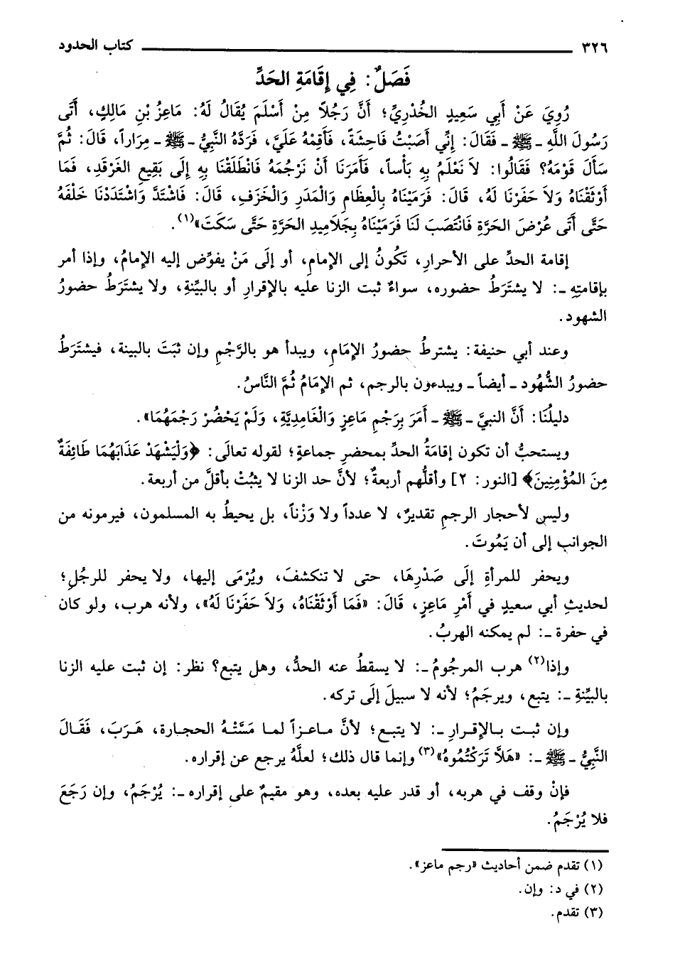 وإن ثبت بالإقرار-: لايتبع؛ لأن ماعزاً لما مسته الحجارة، هرب، فقال النبي - صلى الله عليه وسلم -:"هلا تركتموه" وإنما قال ذلك؛ لعله يرجع عن إقراره.