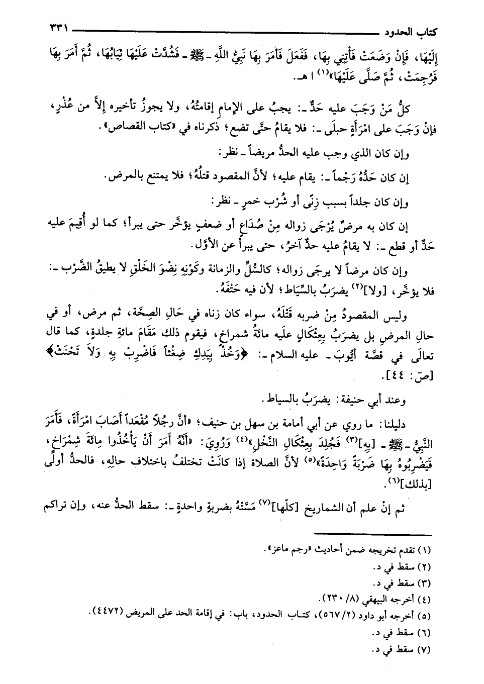 إن كان به مرضٌ يرجى زواله من صداع أو ضعف يؤخر حتى يبرا؛ كما لو أقيم عليه حد أو قطع-: لايقام عليه حد آخر، حتى يبرأ عن الأول.