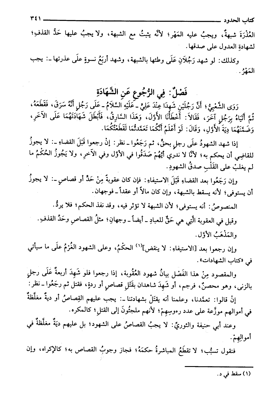 والمقصود من هذا الفصل بيان شهود العقوبة، إذا رجعوا فلو شهد أربعةٌ على رجل بالزنى، وهو محصن، فرجم، أو شهد شاهدان بقتل قصاص أو ردة، فقتل ثم رجعوا - نظر: