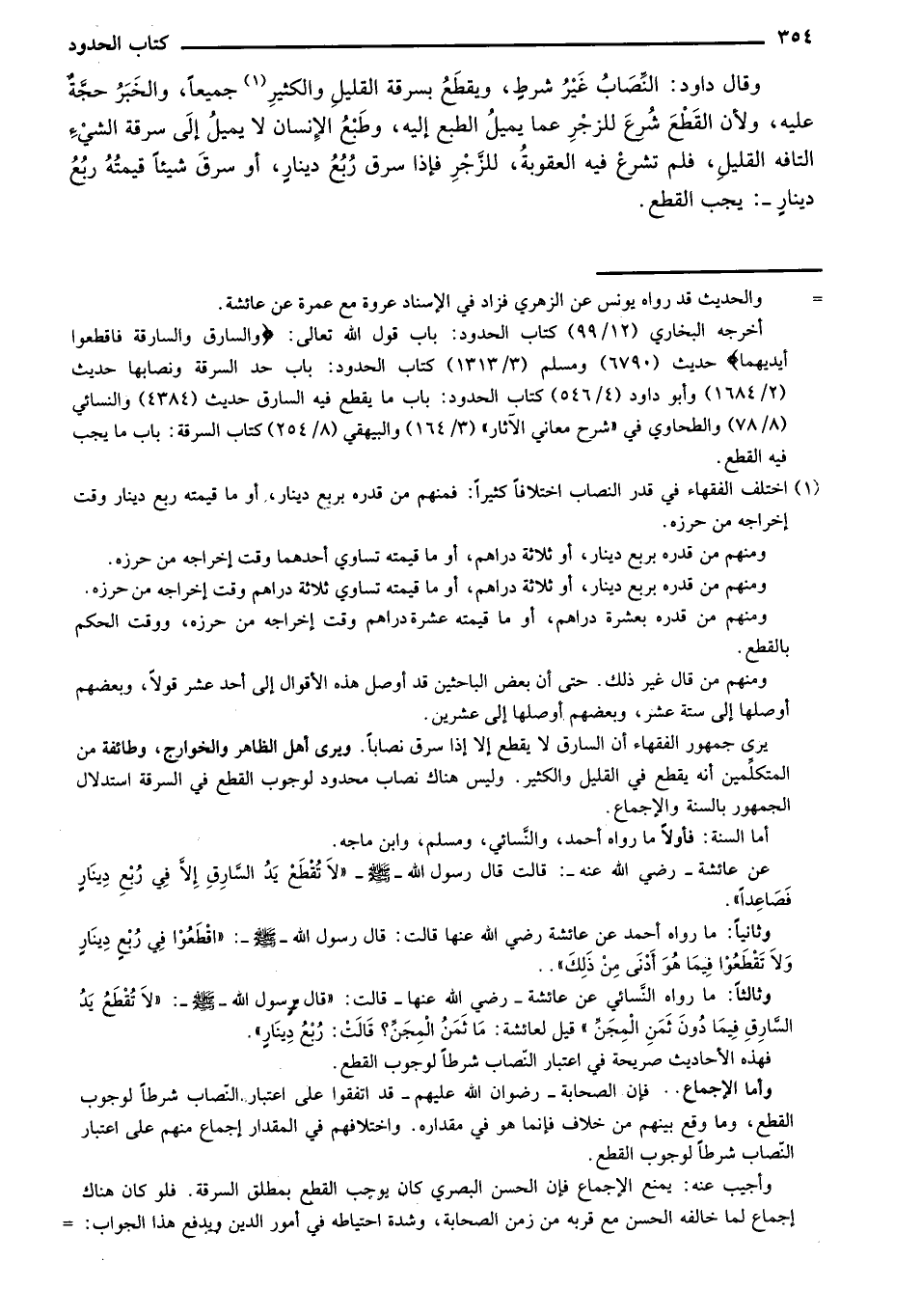 وقال داود: النصاب غير شرط، ويقطع بسرقة القليل والكثير جميعاً، والخبر حجة عليه، ولأن القطع شرع للزجر عما يميل الطبع إليه، وطبع الإنسان لا يميل إلى سرقة الشيء التافه القليل، فلم تشرع فيه العقوبة، للزجر فإذا سرق ربع دينار، أو سرق شيئاً قيمته ربع دينار-: يجب القطع.