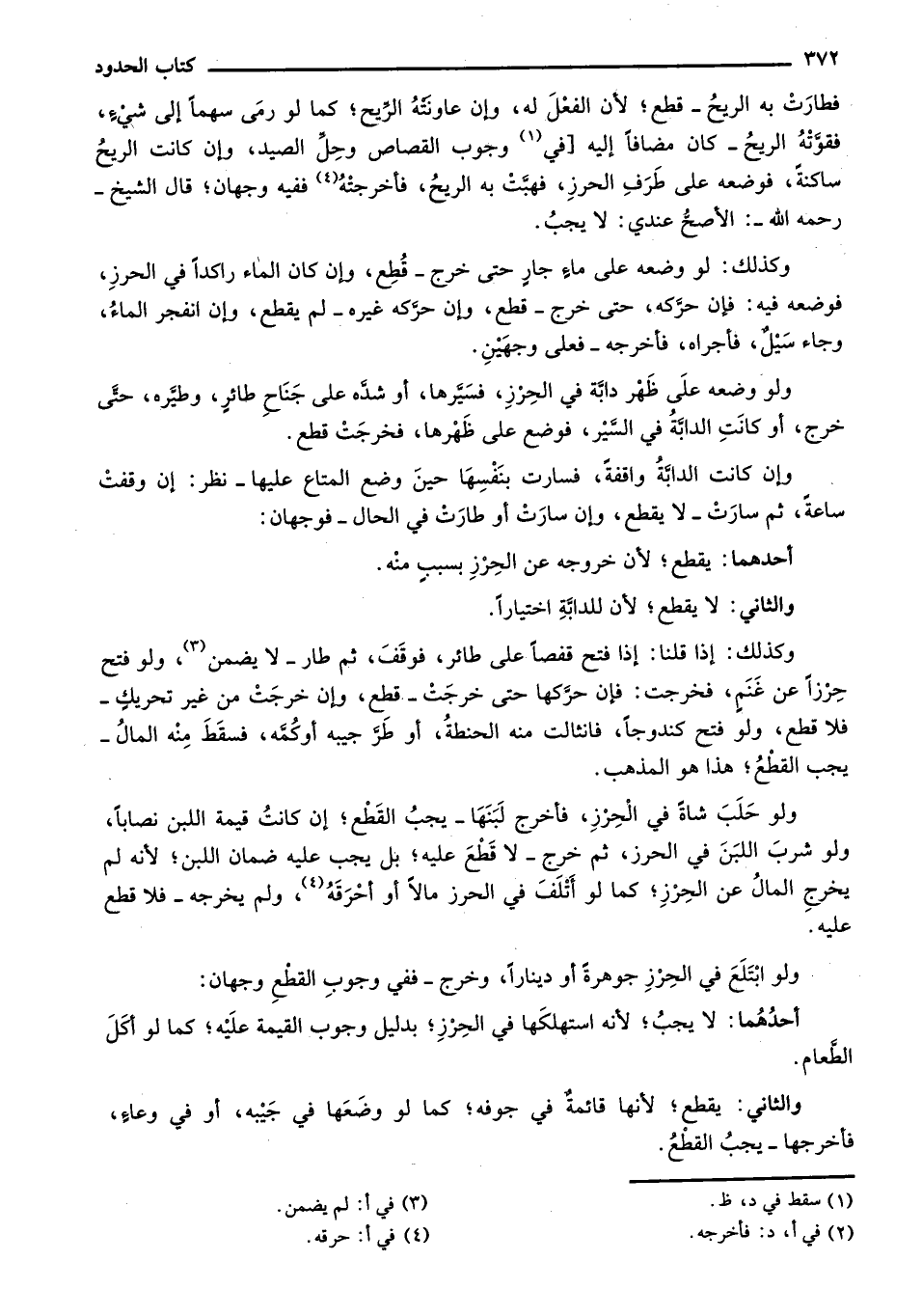 فطارت به الريح - قطع؛ لأن الفعل له، وإن عاونته الريح؛ كما لو رمي سهماً إلى شيء، فقوته الريح - كان مضافاً إليه [في وجوب القصاص وحل الصيد، وإن كانت الريح ساكنةً، فوضعه على طرف الحرز، فهبت به الريح، فأخرجته ففيه وجهان؛ قال الشيخ - رحمه الله-: الأصح عندي: لا يجب.