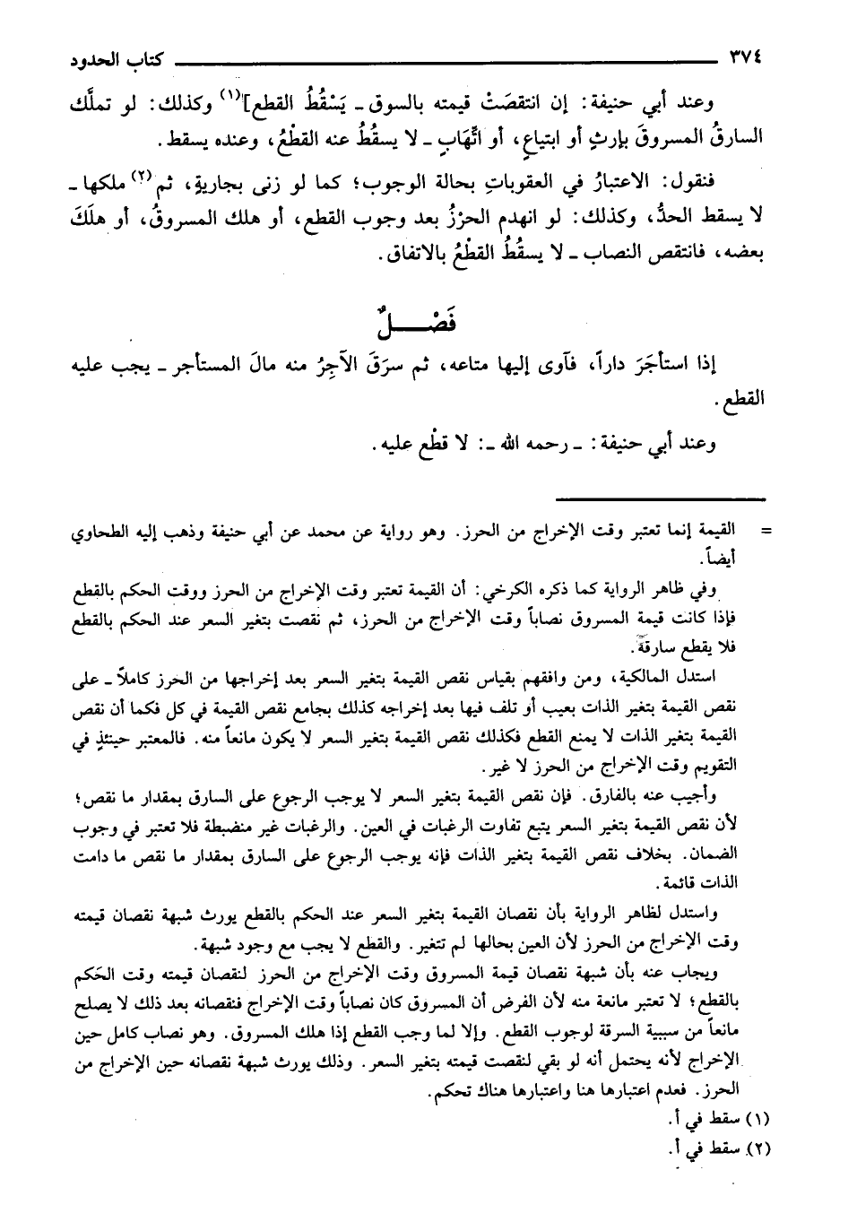 فنقول: الاعتبار في العقوبات بحالة الوجوب؛ كما لو زنى بجارية، ثم ملكها - لا يسقط الحد، وكذلك: لو انهدم الحرز بعد وجوب القطع، أو هلك المسروق، أو هلك بعضه، فانتقص النصاب - لا سقط القطع بالاتفاق.
