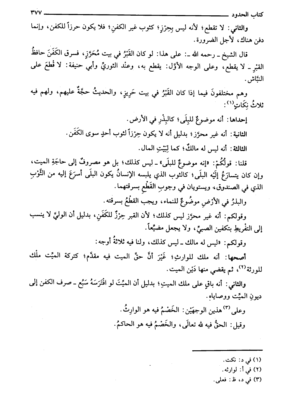 وقولكم: أنه غير محرز ليس كذلك؛ لأن القبر حرز للكفن، بدليل أن الولي لا ينسب إلى التفريط بتكفين الصبين ولا يجعل مضيعاً.