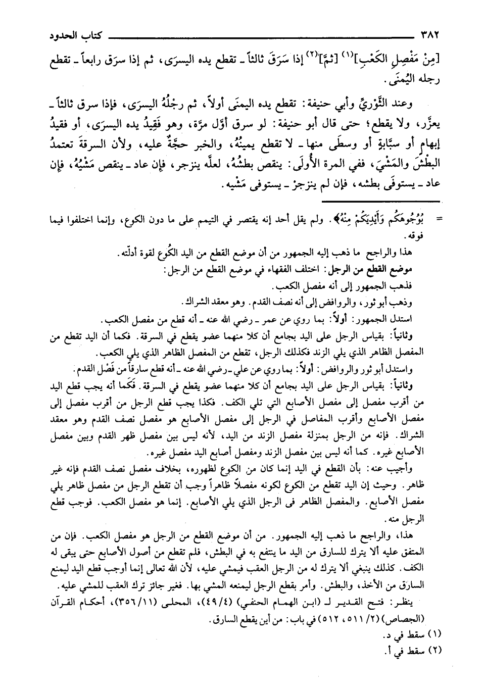 [من مفصل الكعب] [ثم] إذا سرق ثالثاً - تقطع يده اليسرى، ثم إذا سرق رابعاً - تقطع رجله اليمنى.