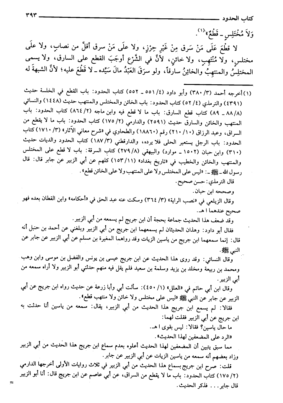 لا قطع على من سرق من غير حرزٍ، ولا على من سرق أقل من نصاب، ولا على مختلس، ولا منتهب، ولا خائن، لأن في الشرع أوجب القطع على السارق، ولا يسمى المختلس والمنتهب والخائن سارقاً، ولو سرق العبد مال سيده - لا قطع عليه؛ لأن الشبهة له