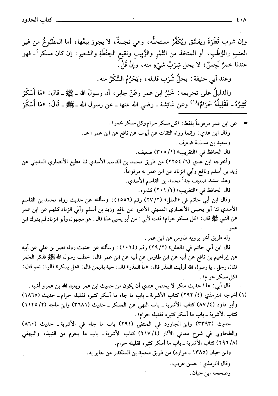 والدليل على تحريمه: خبر ابن عمر وعن جابر، أن رسول الله - صلى الله عليه وسلم- قال: "ما أسكر كثيره - فقليله حرام" وعن عائشة - رضي الله عنها - عن رسول الله - صلى الله عليه وسلم- قال: "ما أسكر