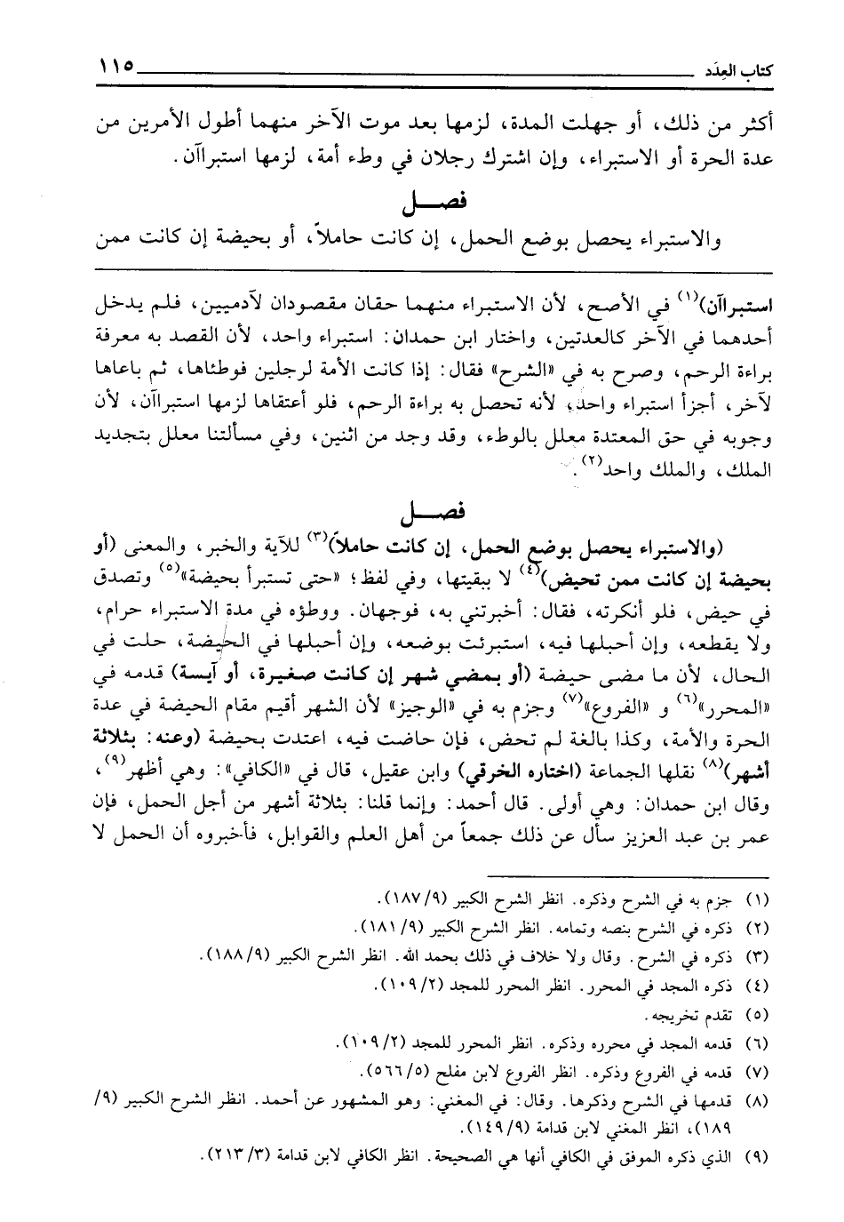 فَصْلٌ (وَالِاسْتِبْرَاءُ يَحْصُلُ بِوَضْعِ الْحَمْلِ إِنْ كَانَتْ حَامِلًا) لِلْآيَةِ وَالْخَبَرِ، وَالْمَعْنَى (أَوْ بِحَيْضَةٍ إِنْ كَانَتْ مِمَّنْ تَحِيضُ) لَا بِبَقِيَّتِهَا، وَفِي لَفْظٍ " حَتَّى تُسْتَبْرَأَ بِحَيْضَةٍ " وَتَصْدُقُ فِي حَيْضٍ، فَلَوْ أَنْكَرَتْهُ، فَقَالَ: أَخْبَرَتْنِي بِهِ، فَوَجْهَانِ، وَوَطْؤُهُ فِي مُدَّةِ الِاسْتِبْرَاءِ حَرَامٌ، وَلَا يَقْطَعُهُ، وَإِنْ أَحَبَلَهَا فِيهِ اسْتُبْرِئَتْ بِوَضْعِهِ، وَإِنْ أَحَبَلَهَا فِي الْحَيْضَةِ حَلَّتْ فِي الْحَالِ لِأَنَّ مَا مَضَى حَيْضَةٌ (أَوْ بِمُضِيِّ شَهْرٍ إِنْ كَانَتْ صَغِيرَةً، أَوْ آيِسَةً) قَدَّمَهُ فِي " الْمُحَرَّرِ "، وَ " الْفُرُوعِ "، وَجَزَمَ بِهِ فِي " الْوَجِيزِ " لِأَنَّ الشَّهْرَ أُقِيمَ مَقَامَ الْحَيْضَةِ فِي عِدَّةِ الْحُرَّةِ وَالْأَمَةِ، وَكَذَا بَالِغَةٌ لَمْ تَحُضْ، فَإِنْ حَاضَتْ فِيهِ اعْتَدَّتْ بِحَيْضَةٍ (وَعَنْهُ: بِثَلَاثَةِ أَشْهُرٍ) نَقَلَهَا الْجَمَاعَةُ (اخْتَارَهُ الْخِرَقِيُّ) وَابْنُ عَقِيلٍ، قَالَ فِي " الْكَافِي ": وَهِيَ أَظْهَرُ، وَقَالَ ابْنُ حَمْدَانَ: وَهِيَ أَوْلَى، قَالَ أَحْمَدُ: وَإِنَّمَا قُلْنَا: بِثَلَاثَةِ أَشْهُرٍ مِنْ أَجْلِ الْحَمْلِ، فَإِنَّ عُمَرَ بْنَ عَبْدِ الْعَزِيزِ سَأَلَ عَنْ ذَلِكَ جَمْعًا مِنْ أَهْلِ الْعِلْمِ وَالْقَوَابِلِ فَأَخْبَرُوهُ أَنَّ الْحَمْلَ لَا