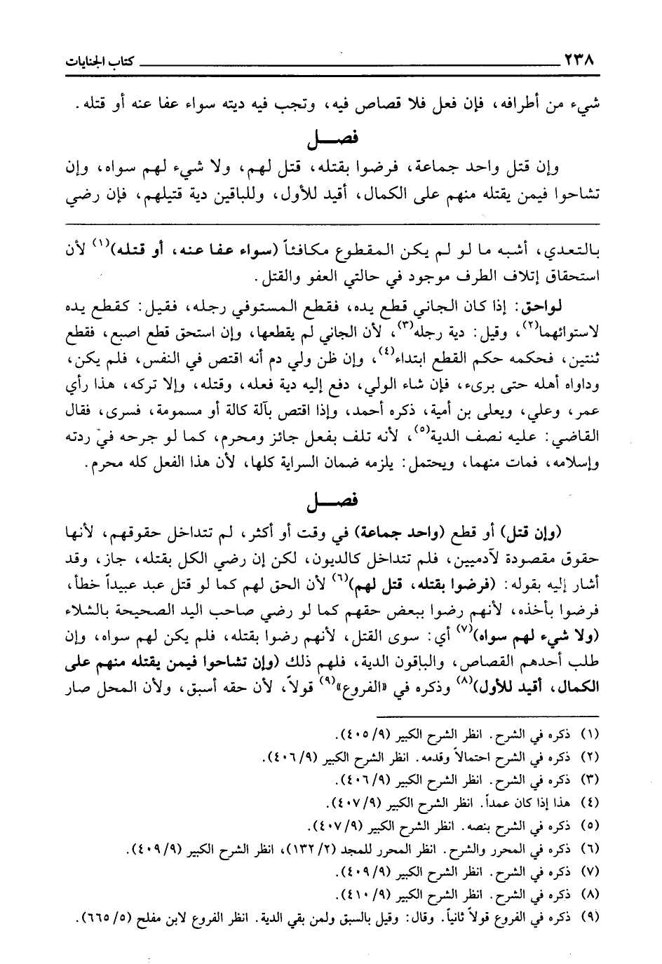 ـــــــــــــــــــــــــــــQبِالتَّعَدِّي، أَشْبَهَ مَا لَوْ لَمْ يَكُنِ الْمَقْطُوعُ مُكَافِئًا (سَوَاءٌ عَفَا عَنْهُ، أَوْ قَتَلَهُ) لِأَنَّ اسْتِحْقَاقَ إِتْلَافِ الطَّرَفِ مَوْجُودٌ فِي حَالَتَيِ الْعَفْوِ، وَالْقَتْلِ.