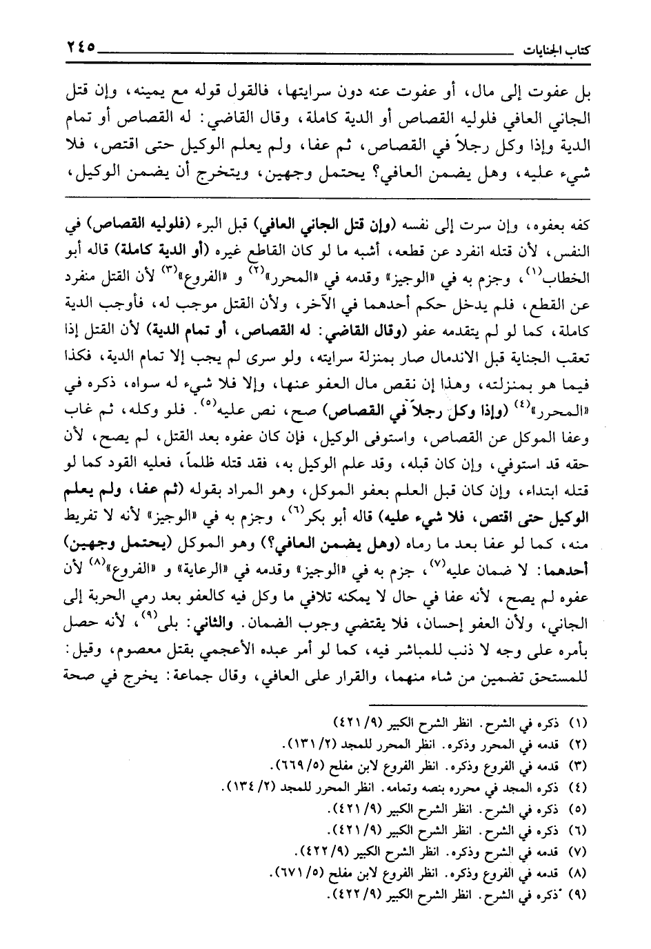 ـــــــــــــــــــــــــــــQكَفُّهُ بِعَفْوِهِ، وَإِنْ سَرَتْ إِلَى نَفْسِهِ.